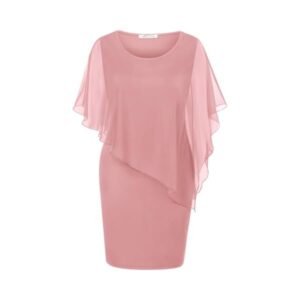 Women’s Mesh Cape Overlay Bodycon Knee Length Pencil Dress for Wedding Guest