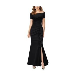 Women’s Elegant Off Shoulder Ruffle Formal Evening Long Dress