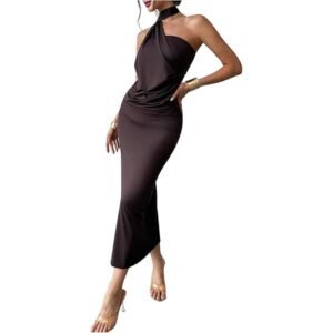 Women’s Sleeveless Bodycon Dress One Shoulder Backless Ruched Cocktail Party Evening Long Dresses